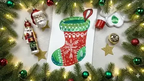 Рисуем новогодний носок для подарков. Простой урок рисования