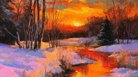 Новый видеоурок! «Заход Солнца». Пишем зимний пейзаж с художником Игорем Сахаровым & Saharovs.RU