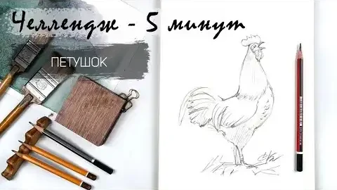 Петушок за 7 минут простым карандашом. Рисуем регулярно. Быстрые наброски